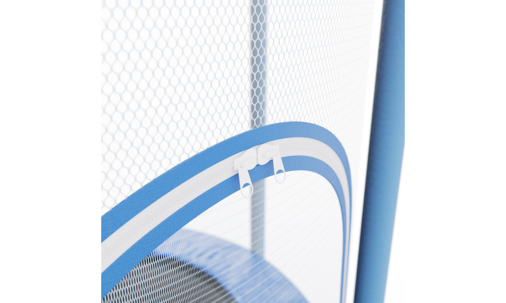 Рама и ножки выполнены из надёжной стальной трубы Ø25 мм с толщиной стенки 1,4 мм. Батут оснащён 6 ножками, которые равномерно распределяют нагрузку и обеспечивают устойчивость при прыжках. Мягкий защитный мат из ПВХ закрывает пружины и раму, предотвращая случайные удары и повышая комфорт во время занятий.