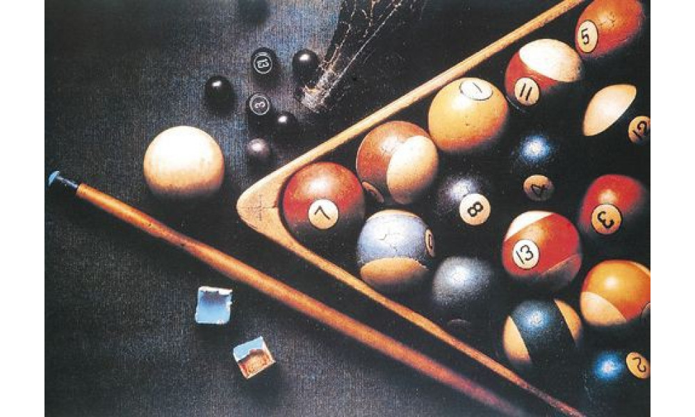 Постер выполнен в виде репродукции с картины, нарисованной на холсте. Идеально подходит для оформления любой бильярдной.